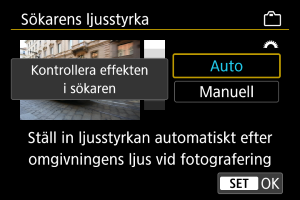 1. Välj [Inställningar: Sökarens ljusstyrka] ().