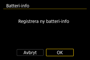 Du kan registrera upp till sex LP-E6P-batterier för kameran. Om du vill registrera flera batterier följer du anvisningarna nedan för varje batteri.