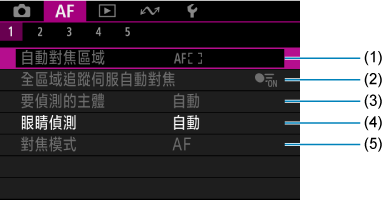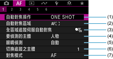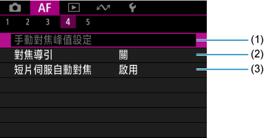 設定頁選單:自動對焦(靜止影像)