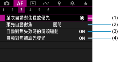 - (1)單次自動對焦釋放優先