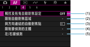- (1)觸控及拖曳自動對焦設定