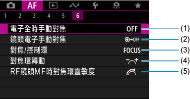 - (5)RF鏡頭MF時對焦環靈敏度