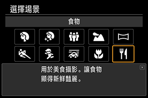 使用[] (食物)進行美食攝影。相片將顯得明亮且使人充滿食慾。還可以減少鎢絲燈或類似光源下導致的偏紅色調。