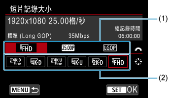 - 視乎短片記錄大小,可能無法記錄至SD卡。按下短片拍攝按鈕不會開始記錄。有關詳細資訊,請參閱規格。
