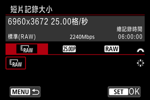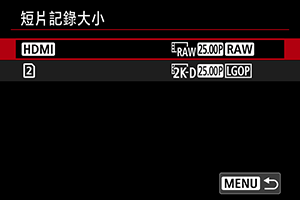 您可以設定HDMI RAW短片輸出的格數和RAW類型。