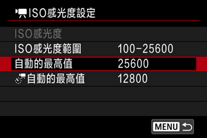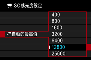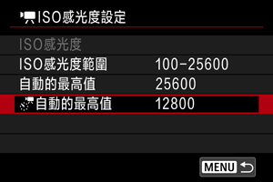 - 選擇[AUTO]以自動設定ISO感光度。