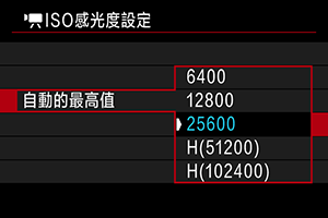 從ISO感光度選項畫面設定