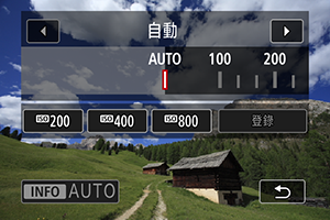 - 您可以透過指定[AUTO]以外的選項並選擇[登錄]來註冊常用ISO感光度設定值。