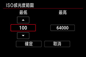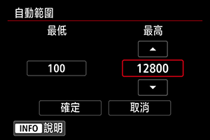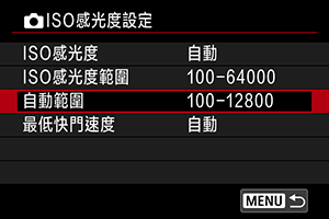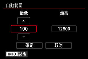 您可以設定ISO自動的自動ISO感光度範圍。