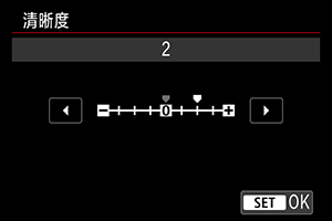 向負方向設定會使影像更柔和,向正方向設定會使影像更清晰。