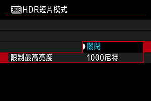 - 設為[關閉]時,最高亮度不受限制。在支援亮度超過1000尼特的顯示器上查看影像時,建議使用此選項。