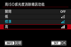選擇[: 高ISO感光度消除雜訊功能](、)。