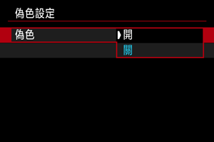 ]以外的選項時,偽色顯示會應用至相機螢幕,並且在透過HDMI連接的外接顯示器顯示實際影像。