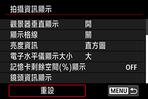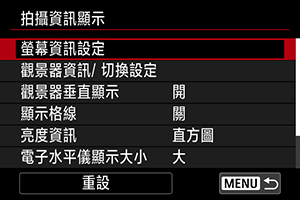 您可以自訂拍攝時螢幕上或觀景器中顯示的詳細資訊和畫面。