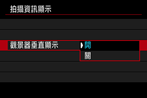 您可選擇垂直拍攝靜止影像時如何顯示觀景器資訊。