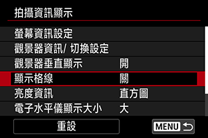 拍攝資訊顯示