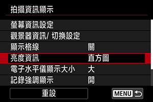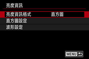 您可以設定在拍攝待機期間按下按鈕時可用的亮度資訊格式(直方圖或波形監視器)。