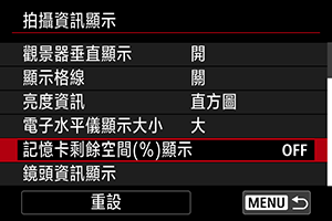 您可以在螢幕上顯示記憶卡剩餘空間。