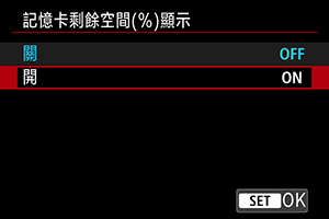 記憶卡剩餘空間(%)顯示