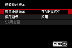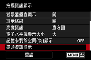 您可以顯示有關目前使用鏡頭的資訊。