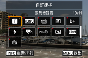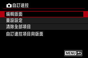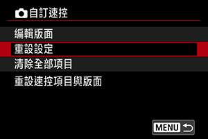 - 選擇[重設設定]將恢復預設的速控畫面項目和版面。