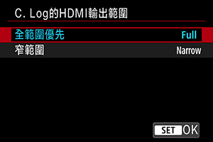 選擇[: C. Log的HDMI輸出範圍]()。