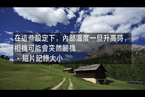 - 長時間記錄短片可能會導致相機的內部溫度升高且會影響影像畫質。如未記錄短片時,盡可能關閉相機。