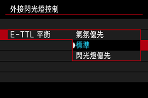 - 將[閃燈模式]設為[E-TTL II 閃燈測光]時可用。