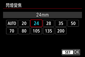 使用具有變焦閃光燈頭的閃光燈時,可設定閃光燈覆蓋範圍。