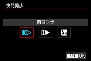 一般情況下,請將此選項設為[前簾同步]以便閃光燈在開始拍攝後立即閃光。