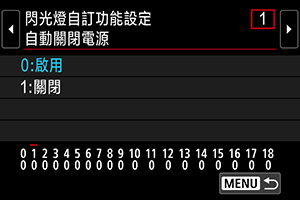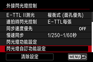 有關閃光燈自訂功能的詳細資訊,請參閱閃光燈的使用說明書。
