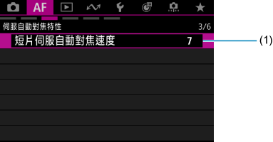 設定頁選單:自動對焦(短片記錄)