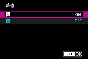 ]以外的選項時,相機畫面上會出現峰值顯示。