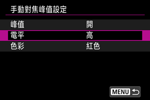 設定手動對焦峰值(輪廓強調)