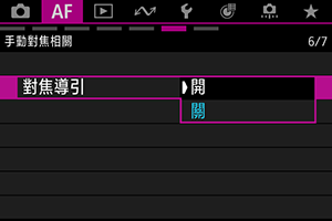 將[: 對焦導引]設為[開]可提供顯示調整對焦的方向和所需調整量的導引框。