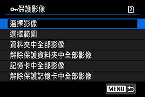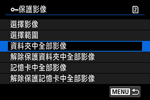 - 要取消保護,選擇[解除保護資料夾中全部影像]或[解除保護記憶卡中全部影像]。