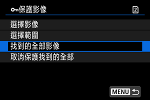 - 如選擇[找到的全部影像],所有按搜尋條件篩選的影像將被保護。
