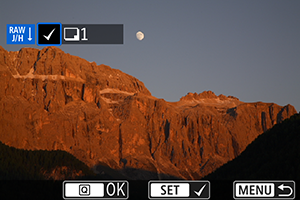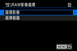 影像以建立JPEG或HEIF影像。RAW影像與拍攝時保持相同,因此可以調整處理條件以建立多個JPEG或HEIF。