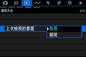 ]:從之前顯示的最後一張影像開始播放(正好已完成拍攝時除外)。