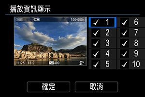 可以指定影像播放期間顯示的畫面及隨附的資訊。