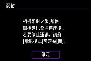 - 如果相機已與其他裝置配對,則會顯示一則訊息。