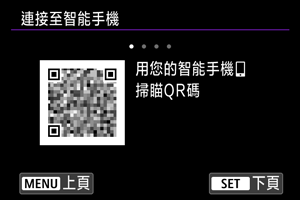 - 如果尚未安裝Camera Connect,請使用智能手機掃描螢幕上的QR碼,前往Google Play或App Store以安裝Camera Connect,然後按下