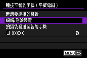 編輯或刪除其他裝置的連接設定前,請結束Wi-Fi連接。