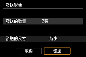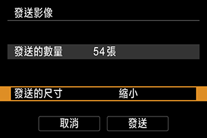 - 發送多張影像時,還可以在發送前在確認畫面上根據需要變更[發送的尺寸]。