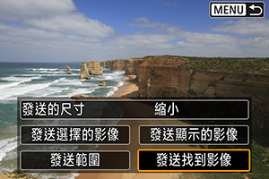 一次過發送符合[: 設定影像搜尋條件]中設定的搜尋條件的所有影像。有關[