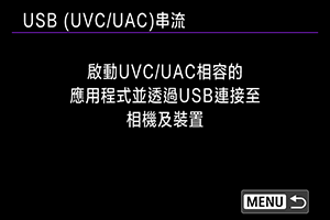 如果您將透過USB連接到電腦或其他裝置使用UVC/UAC兼容的應用程式,請選擇此選項。
