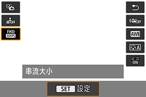 - [串流大小]設為[