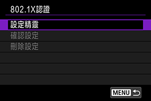 選擇[802.1X認證]可使用設定精靈來設定、查看或刪除802.1X認證設定。