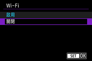 在禁止使用電子裝置或無線裝置的場合(如乘坐飛機或在醫院內),將其設為[關閉]。