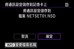 - 設定檔案會儲存至打開記憶卡時顯示的記憶卡位置(根目錄下)。